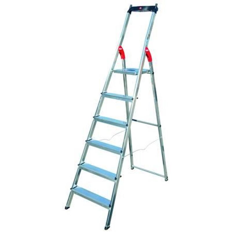 La scala di sicurezza per uso domestico con copricerniera HAILO e vaschetta per piccoli attrezzi e utensili - utilizzo per uso domestico, hobby e fai da te - costruita secondo le normative europee EN 131, portata max Kg.150