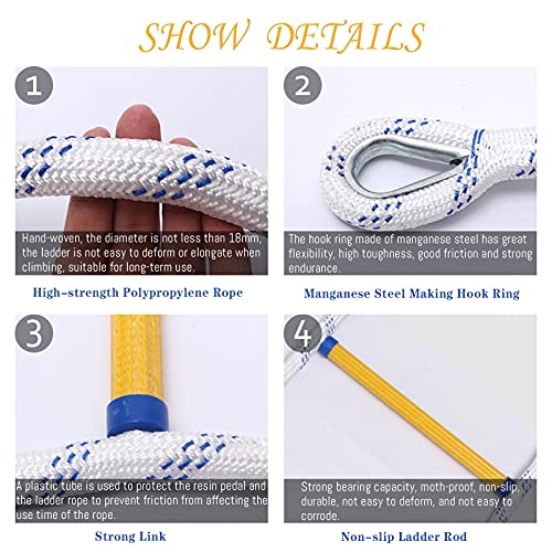 [La dimensione della scala di corda]: Lunghezza: 5 m, peso 150 kg, a seconda di dove ti piace appendere alla scala di corda, è molto conveniente. Verificare sempre la sicurezza prima dell'uso. Se la corda è usurata o anormale, smettere di usarla