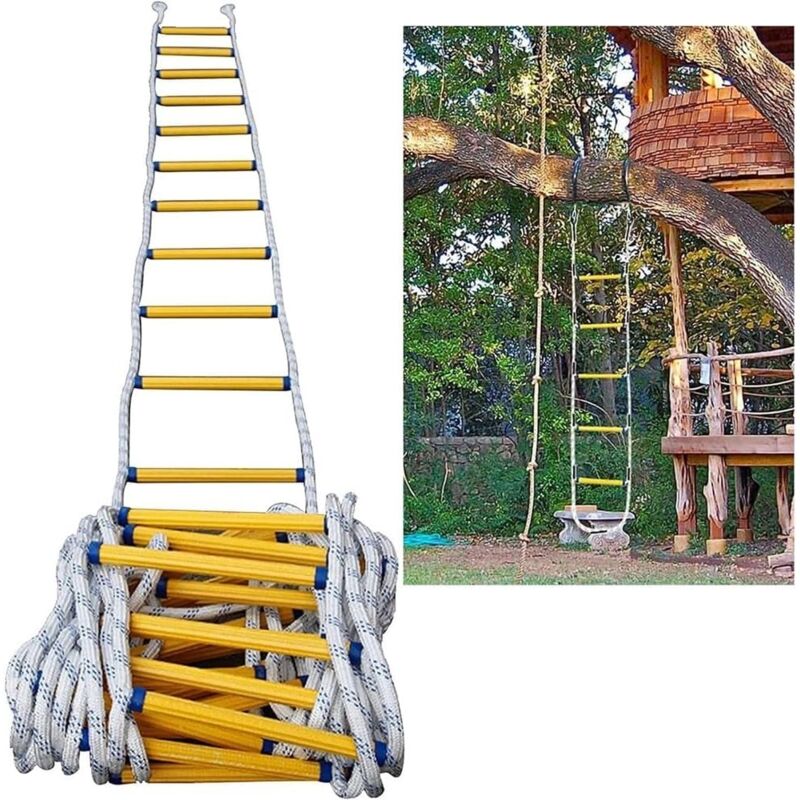 Realizzato in materiale resinoso ad alta resistenza e in nylon ignifugo. Ha una resistenza alla trazione molto affidabile che Non richiede installazione e può essere utilizzato direttamente in situazioni di emergenza. Potete stare certi che vi aiuterà a fuggire rapidamente quando siete in pericolo. La scala non è solo un aiuto per la fuga, ma anche uno strumento per fare i compiti o le escursioni. Può aumentare l'elasticità dei muscoli e del corpo dei bambini e migliorare la resistenza.