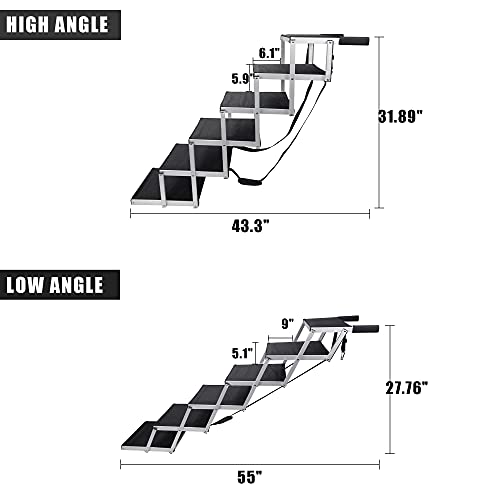 YEP HHO - Le piastre di rinforzo sono posizionate nella parte inferiore di ogni gradino, che non viene affondato troppo quando il cane è sul gradino. I cuscinetti in gomma inferiori forniscono una trazione aggiuntiva e migliorano il contatto con la superficie. Materiale antiscivolo deluxe impermeabile, traspirante, isolante, ampi passaggi impediscono ai vostri animali domestici di camminare sul lato. Moschettone aggiuntivo con chiusura rapida per il fissaggio sul retro del veicolo.