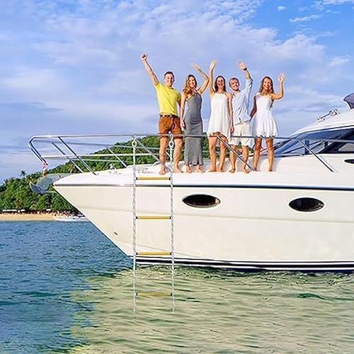 Servizio durevole: realizzato in nylon e acciaio inossidabile, che sono materiali resistenti e durevoli. È una scala riutilizzabile e resistente al sole che ti servirà bene per molte stagioni. Questa scala di corda per barche è un ottimo accessorio per le tue avventure in barca.
