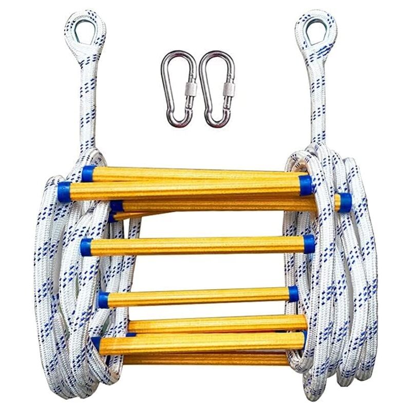 È semplice e veloce da usare in situazioni di emergenza, consentendo di guadagnare tempo per la fuga o il salvataggio. -- La scala di emergenza è realizzata in fibra di poliestere di alta qualità e metallo resistente. -- La scala di emergenza è facile da usare, non richiede un'installazione complicata, può essere utilizzata in pochi secondi, anche i bambini possono usarla facilmente. -- La scala di corda può essere arrotolata per essere trasportata e riposta facilmente senza occupare troppo spazio. -- La scala di corda è dotata di due moschettoni, adatti alla maggior parte delle finestre, balconi, ringhiere, e può essere utilizzata per la fuga, il salvataggio, l'arrampicata e così via.