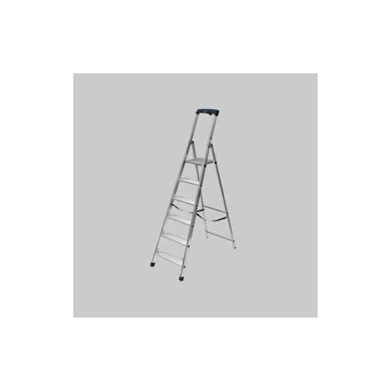 Scala in alluminio di elevata qualit.... Montanti anteriori 24x50 mm. Montanti posteriori 20x40 mm. Cinghia di sicurezza. Cerniere in alluminio. Gradini passanti nel montante. Scala domestica professionale 'piu' su' 10 gradini Scale
