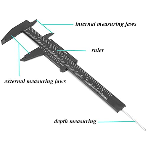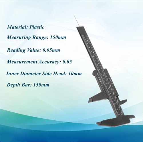 Scala a doppia regola, 150 mm di plastica ad alta precisione Scala a doppia regola Strumento di misurazione calibro a corsoio 0,5 mm(Nero)