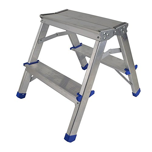 Doppia gradini in alluminio con 2 gradini antiscivolo con scanalature