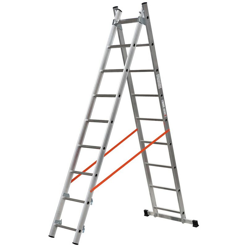 In alluminio, utilizzabile a sfilo o a cavalletto. dotata di stabilizzatore di base, tirante antiapertura e limitatore di altezza. made in italy.2 x 7 gr.
