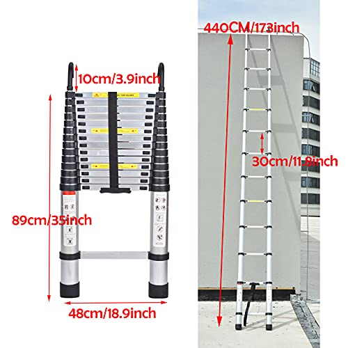 Scala di estensione Scala a pioli telescopica in alluminio da 14,5 piedi con gancio rimovibile per sottotetto multiuso Scala estensibile da 4,4 m 330 libbre/150 kg Standard EN131 per impieghi gravosi