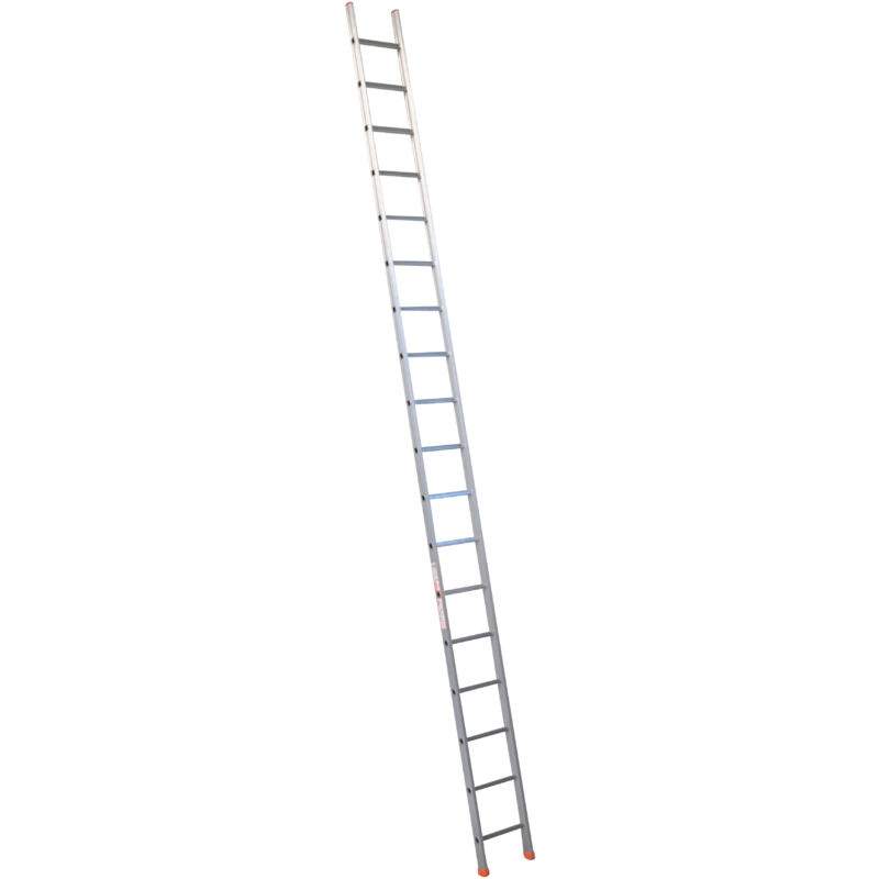 Mod. Genia a 16 gradini una scala europea semplice da appoggio in alluminio a pioli quadri 30x30 mm. Montanti 25x65 mm. In alto con copritesta. Senza barra stabilizzatrice (con predisposizione alla successiva dotazione). Indicata per un uso intensivo industriale ed agricolo. Portata max 150 kg. Larga solo 39 cm. Altezza 502 cm. Altezza di lavoro utile 595 cm. Peso 10,7 kg.