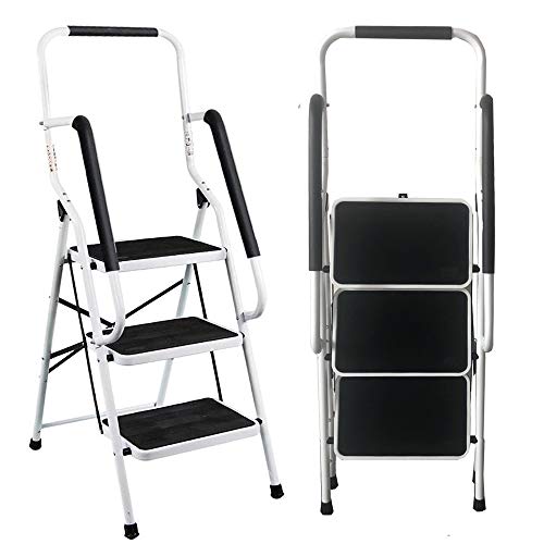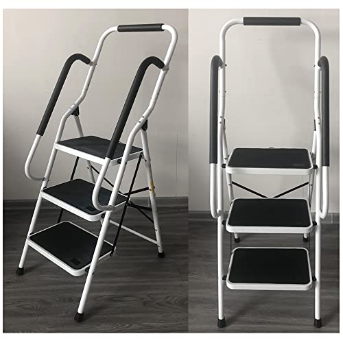 Scala a 3 gradini con corrimano di sicurezza, pieghevole, sicura, antiscivolo, opaca e resistente, multiuso, per la casa