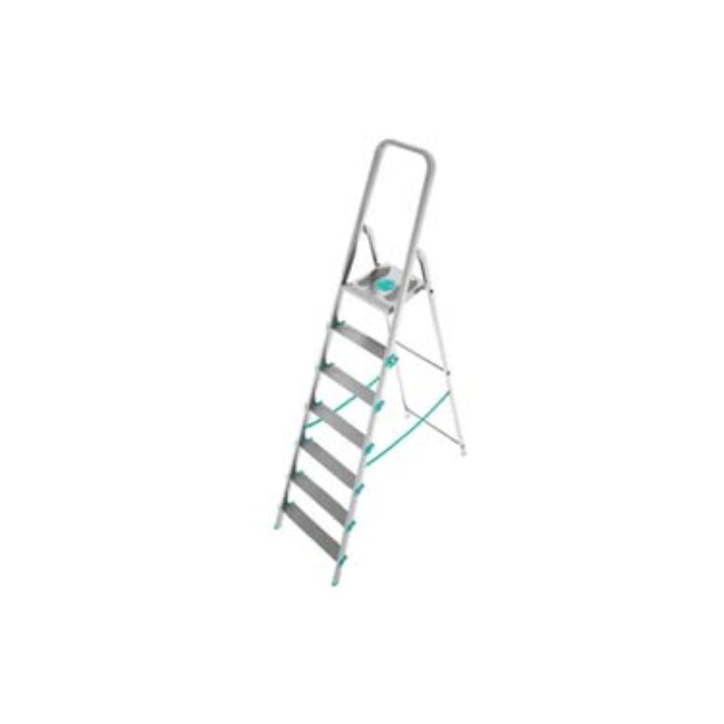 8 gradini telaio in alluminio mm.40x24 ovalizzato - gradini antiscivolo in alluminio estruso - gradini fissati al telaio con rullatura e senza rivetti - ampia piattaforma - piedini antiscivolo - portata max kg.150 - prodotto certificato a norma en131 - made in italy Categoria merceologica: Scale, sgabelli, ponteggi, trabattelli, cavalletti - Utensili manuali - Scale alluminio