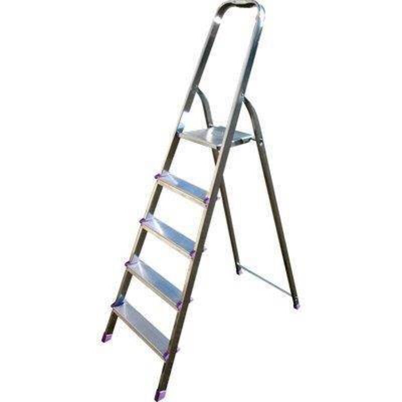 In alluminio ed acciaio. Sezione montante Mm. 40x20, sezione sostegno in alluminio Mm. 30x20. Gradini in alluminio con sezione di appoggio Mm. 80. Fissaggio gradini con 4 rivetti della portata di kg. 120 cadauno. Pianetto in lamiera rivestita silver. Fascia di sicurezza nelle versioni a partire da 6 gradini. Piedini antiscivolo. Scala casalinga rispondente alla normativa D.Lgs 81/08.