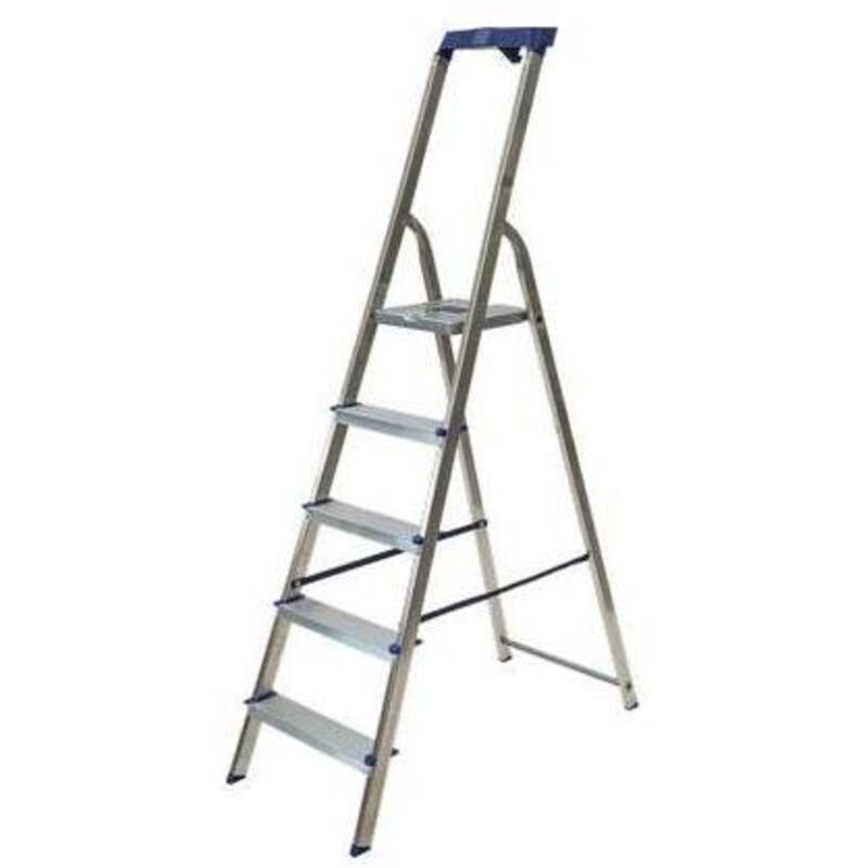 ALLUMINIO/ACCIAIO GRADINI 8 H.CM 171In allumino. Sezione montante anteriore da Mm. 42x20, posteriore da Mm. 35x20. Gradino antisdrucciolo ribordato da Mm. 82 di larghezza. Pedana in acciaio speciale con inserite 50 nervature profonde per ottenere la portata di oltre Kg. 265. Parapetto Mm. 280x615, con montanti paralleli, vaschetta porta oggetti Mm. 300x140 ed ampia piattaforma in acciaio. Tacco in PVC e fibre antiscivolo. Cinghie antiapertura a partire da 5 gradini. Ingombro Mm. 145. Portata massima Kg. 150. Rispondente alla normativa europea EN131.
