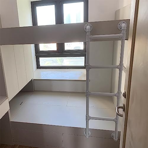 Scala per montaggio a parete bianca per interni ed esterni, Scala per letto a castello con tubo tondo di altezza 100cm-160cm, Scala per soppalco in ferro battuto, Accessori inclusi (Color: White, S