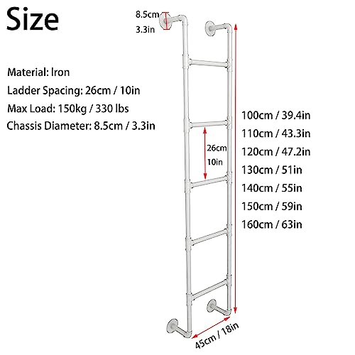 Materiale: scala per montaggio a parete in ferro. Robusto e stabile, superficie liscia, forte capacità portante, capacità di carico massima 150 kg / 330 libbre.
