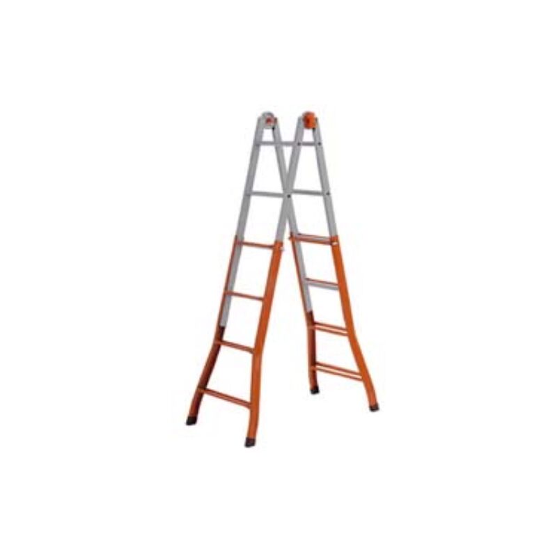 5+5 gr.- aperta cm.481h.- cm.56x18x141h.- kg.17 telescopica, struttura in acciaio verniciato - progettata e costruita secondo le normative e le leggi vigenti in italia, d.lgs 81/08- portata max kg.100 - sezione montanti elettrosaldati in acciaio mm.40x20 - cerniera di bloccaggio munita di dispositivo di sicurezza antiapertura e antichiusura semiautomatico - gradino interno ed esterno a forma trapezoidale che consente in fase di utilizzo una posizione comoda, perfettamente piana e parallela a terra - piedini antisdrucciolo Categoria merceologica: Scale, sgabelli, ponteggi, trabattelli, cavalletti - Utensili manuali - Scale estensibili