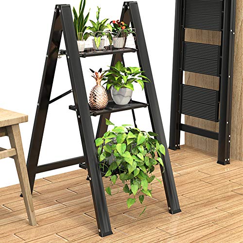 La Scala Pieghevole in Tre Fasi in Lega Di Alluminio Ultrasottile, Con Fermezza Antiscivolo E Pedali Ampi, Una Scala Leggera Adatta Per L'ufficio Domestico, Che Può Sopportare 330 Sterline,Nero