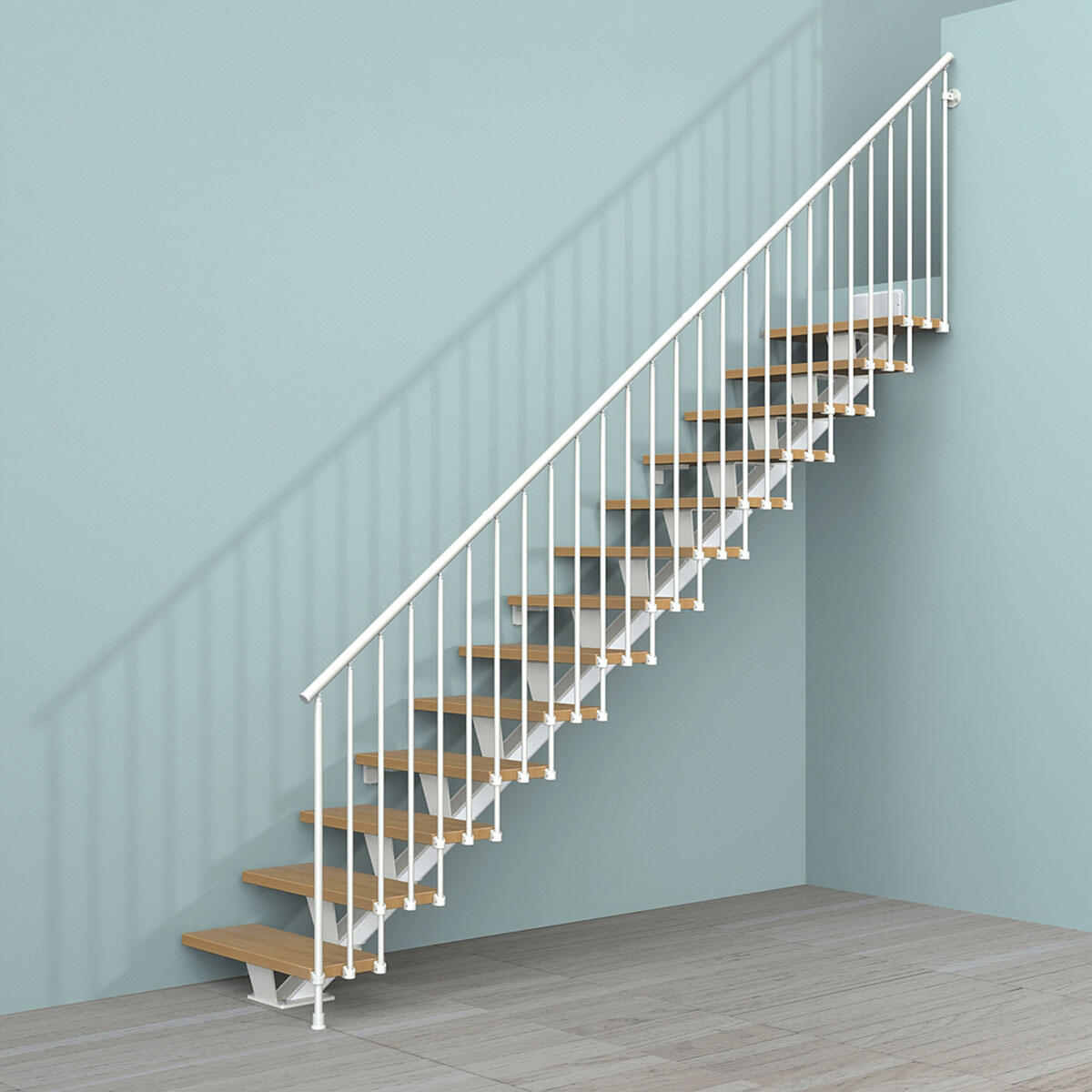 La scale a MAS è caratterizzata da una originale struttura portante realizzata con supporti in acciaio verniciato, il cui assemblaggio compone una struttura a forma di monotrave. L'innovativa strutture rende la scala leggera, giovane e poliedrica. Una scala che combina legno massello di faggio e acciaio in un mix perfetto di praticità e solidità con varianti cromatiche ed essenze per personalizzare con creatività piccoli e grandi spazi. La ringhiera 030 è caratterizzata da un corrimano in acciaio verniciato dello stesso colore della struttura, fissato alle colonnine verticali a sezione circolare, in acciaio verniciato dello stesso colore della struttura.. Scala prefabbricata, facile da montare per chi ama fai da te.. Elegante e funzionale, è la scelta ideale per comodità e sicurezza