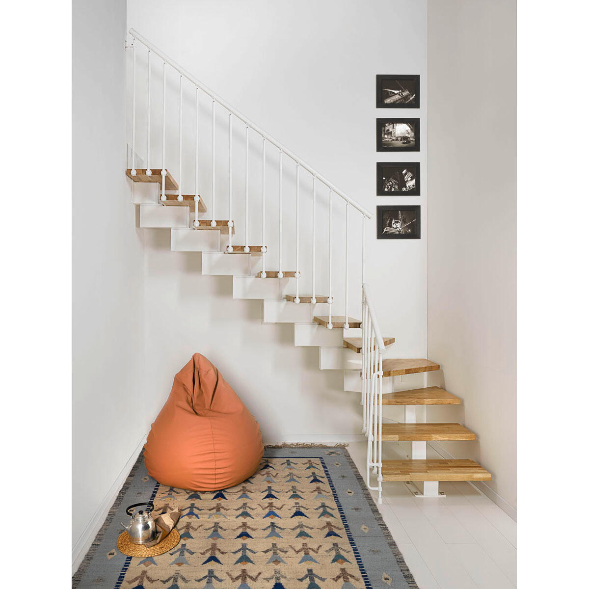 Oak.90 è una scala a rampa in kit semplice da montare, facile da configurare e con massima adattabilità al vano scala. Infatti, la regolazione in altezza, pedata e rotazione durante la posa in opera permette, oltre alla massima adattabilità al vano scala, anche configurazioni rettilinee con una o due curve. La struttura della scala è in acciaio verniciato, con gradini in legno massello rovere tinta naturale. Il corrimano è in PVC con un'anima di alluminio e la ringhierà è composta da colonnine in acciaio verniciato. Tre sono le larghezze disponibili: 70, 80 e 90 cm. Scala prefabbricata, facile da montare per chi ama fai da te.. Eleganza e naturalezza grazie ai gradini in legno di rovere