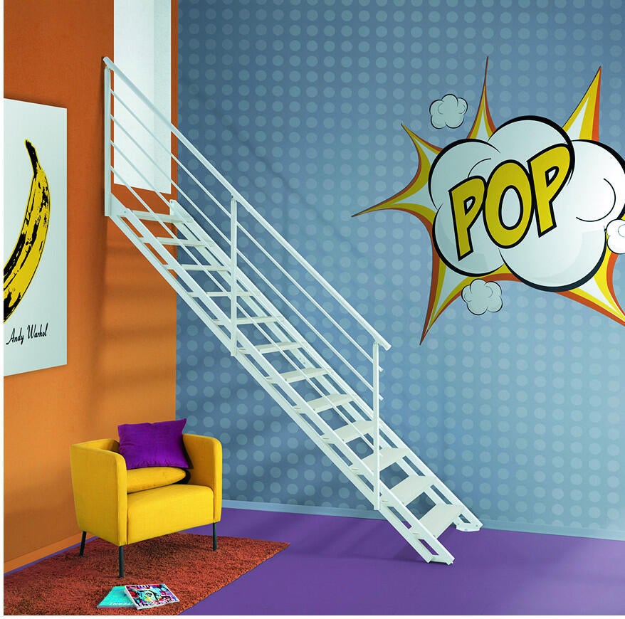 La scala rettilinea POP è un'innovativa scala a rampa per interni, caratterizzata da una struttura laterale tubolare in acciaio di colore bianco. La ringhiera è composta da colonnine verticali in acciaio verniciato a sezione quadrata collegate da quattro tubini orizzontali e il corrimano è in acciaio verniciato a sezione circolare. I gradini rettilinei sono in multistrato di betulla di colore sbiancato. La scala ha una larghezza di 80 cm ed è regolabile in altezza tra 260 e 303 cm. Elegante e funzionale, è la scelta ideale per comodità e sicurezza. Ideale per ambienti interni in stile contemporaneo. Tutti i componenti della scala a rampa Pop sono già pronti per l'assemblaggio e consentono un montaggio semplice e veloce