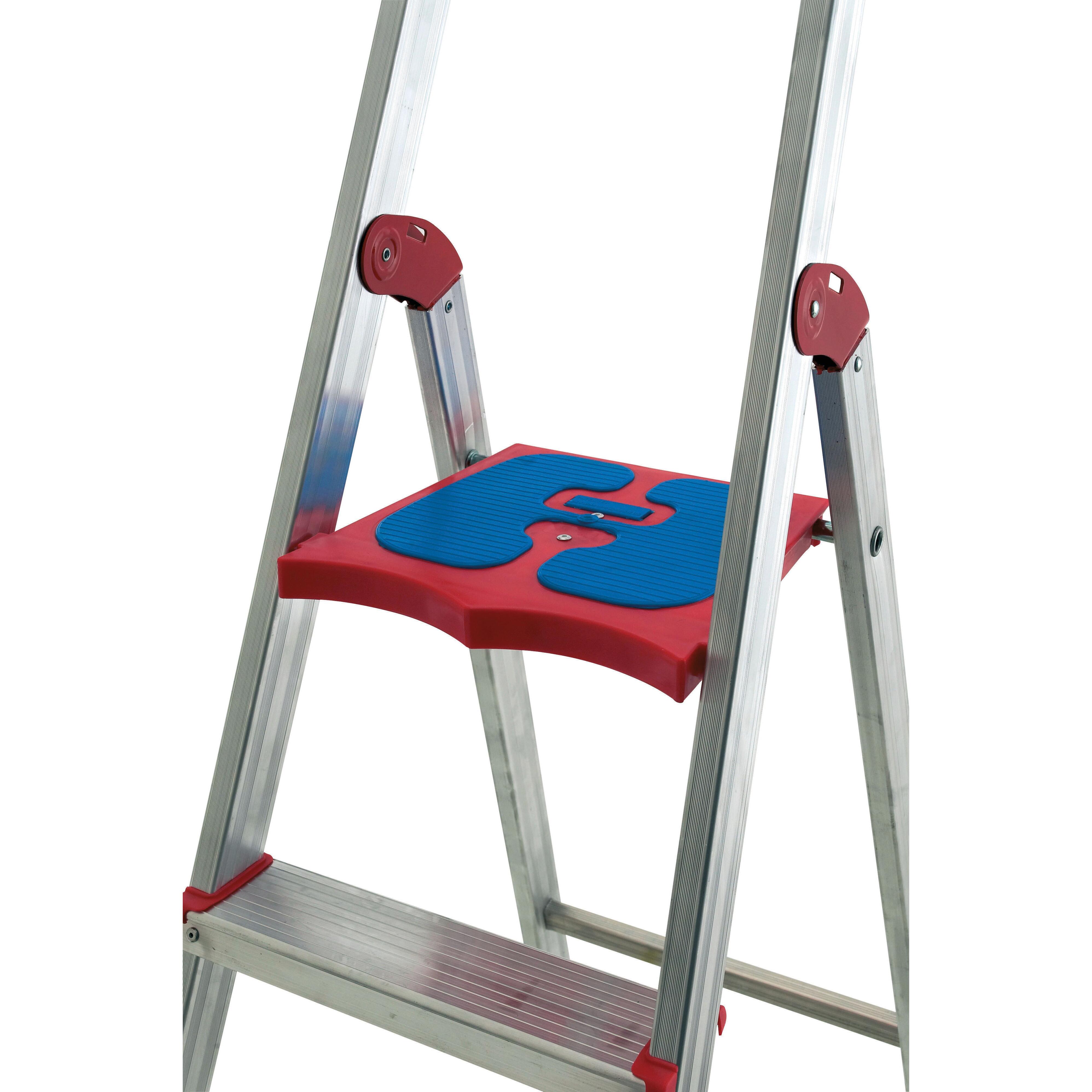 Professionale a 7 gradini in alluminio estruso a un lato di salita.. Dotata di comoda vaschetta porta utensili con gancio porta secchio. Piano ergonomico brevettato SICOS in materiale plastico alto resistenziale e gomma antisdrucciolo. Sezione profilo montante 51x20 mm. Sezione gradino 80 mm. Portata 150 kg. Normativa europea EN 131.