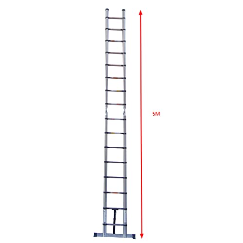 Scala Telescopica in acciaio inox 5M(2,5M+2,5M) Treppe Pieghevole Multifunzione Scaletta, allungabile antiscivolo, portata 150 kg