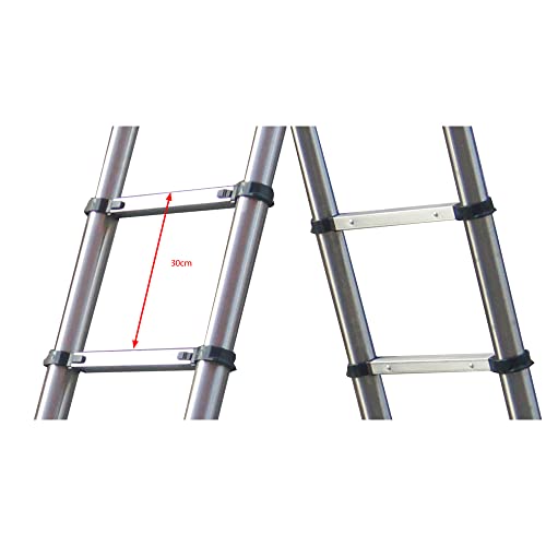 MATERIALE DELLA SCALA TELESCOPICA: Realizzato di acciaio inox resistente per garantire una capacità di 150 kg. Veloce, leggero, compatto e facile da usare. È più sicuro e confortevole. Gradini antiscivolo. Distanza tra i gradini: 30 cm.