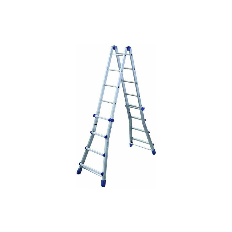 Scala professionale ad uso intensivo, altissima versatilità d'utilizzo, struttura rinforzata, cerniere speciali in acciaio e resina, piedini antiscivolo, portata kg. 150, certificata EN131.