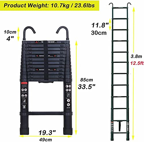 Scala telescopica da 3,8 m con gancio staccabile Scala in alluminio resistente Scala estensibile Scala multiuso 150 kg Capacità EN131 Approvata di sicurezza