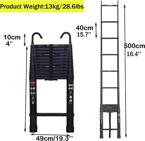 Scala telescopica da 5 m con gancio staccabile Scala in alluminio resistente scaletta estensibile scala multiuso 150 kg capacità EN131 approvata di sicurezza