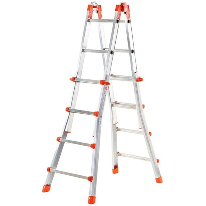 Scala multifunzione telescopica PEPPina Gierre in alluminio, 5+5 pioli, permette di raggiungere diverse altezze di lavoro e può essere usata in tre configurazioni: come scala a portafoglio / doppia, oppure zoppa (quando c'è un dislivello) oppure tutta estesa (configurazione singola) con l'aggiunta di barra stabilizzatrice in conformità con la norma EN131-4. La scala multifunzione telescopica Gierre PEPPina AL040 - COMPLETAMENTE MADE IN ITALY - è dotata di un'articolazione in acciaio brevettata, con manopola di design, facile da impugnare. Il sistema di sicurezza di apertura-chiusura è semi-automatico, permette di aprire e chiudere la scala con facilità e in sicurezza. Il gancio laterale in acciaio è robusto e permette di regolare agevolmente l'altezza. I montanti hanno un profilo stondato, per una presa più confortevole. La struttura è solida e garantisce una maggiore resistenza alla torsione e al carico. I piedini sono antiscivolo, in materiale bi-componente. portata massima (kg) 150