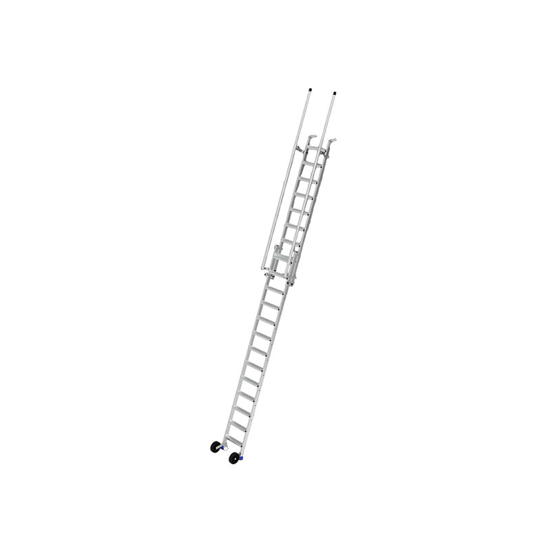 USO - Scala telescopica, più sicura di una scala tradizionale. - Attrezzatura per uso intensivo in cantieri edili, di costruzione o di ristrutturazione. - Per l'accesso permanente o temporaneo per la manutenzione di macchinari industriali. - Nel settore edile, le scale telescopiche garantiscono un utilizzo sicuro a diversi livelli di costruzione. - Per l'accesso a magazzini e scaffali sospesi a diverse altezze. SICUREZZA - Scala dotata di gancio 100 x 60mm per un fissaggio sicuro. - Pedate antiscivolo profonde 80 mm. - Doppio corrimano per una salita sicura - Corrimano retrattile per aiutare l'operatore ad accedere all'area di lavoro.