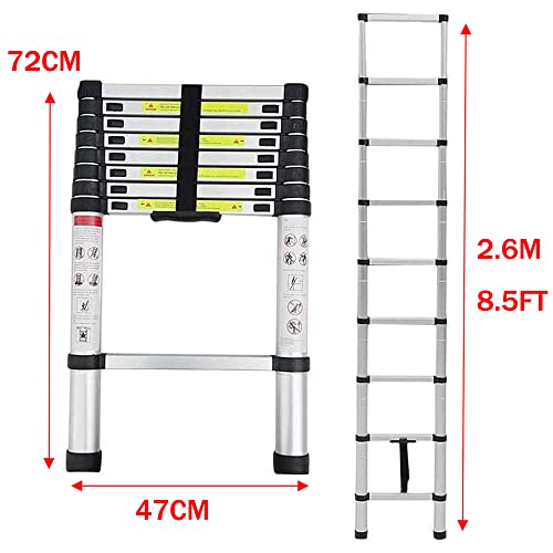 Scala Telescopica 2.6M Scale Pieghevoli Multiuso in Alluminio Scala a Soppalco Portatile con 9 Gradini Scaletta Pieghevole per uso Domestico max Carica 150 kg/330 libbre