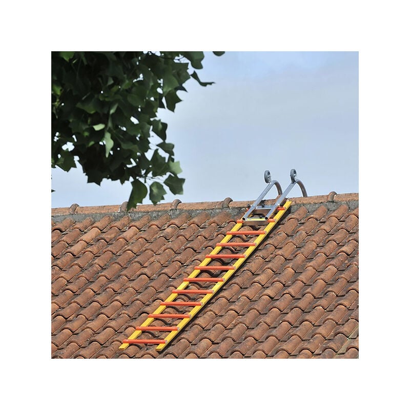 USO - Scala da tetto piana per avvicinarsi al tetto: ideale per i lavori di copertura in ardesia - Attrezzatura ideale per i professionisti delle coperture: conciatetti, zincatori, carpentieri... - Scala da tetto che consente l'accesso alla canna fumaria per gli spazzacamini. - Per la verifica, il controllo e la manutenzione dei pannelli solari o dei sistemi di ventilazione. PIOLI PIATTI - Pioli piatti 48 x 22mm con interasse di 39cm. - I pioli piatti offrono comfort e sicurezza per i piedi e le ginocchia. - Pioli antiscivolo per una sicurezza ottimale quando si lavora sul tetto. MONTAGGIO FACILE E VELOCE - La scala è composta da 3 parti che possono essere assemblate in modo rapido e semplice per raggiungere una lunghezza totale di 6.61m. - Gli elementi sono tenuti insieme da chiusure manuali. - Questo sistema di assemblaggio consente di risparmiare spazio durante il trasporto e lo stoccaggio. CARATTERISTICHE - Legno flessibile per una buona protezione di piastrelle o ardesia - Buona
