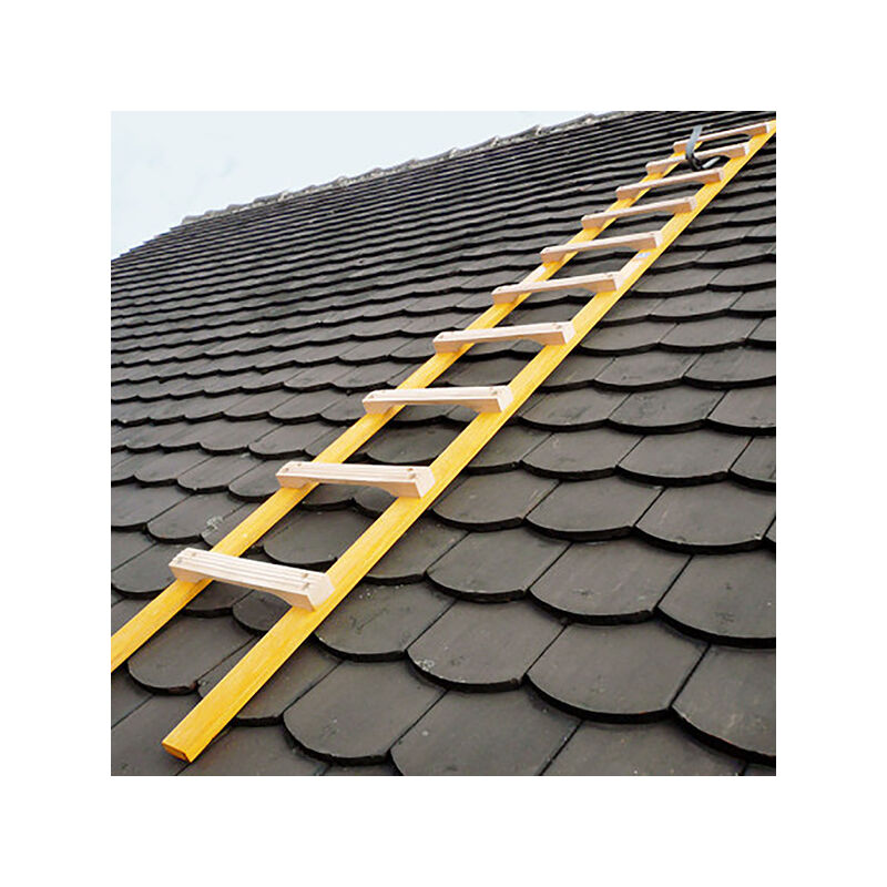 USO - Scala da tetto piana per avvicinarsi al tetto: ideale per i lavori di copertura in ardesia. - Attrezzatura ideale per i professionisti delle coperture: conciatetti, zincatori, carpentieri... - Scala da tetto che consente l'accesso alla canna fumaria per gli spazzacamini. - Per la verifica, il controllo e la manutenzione dei pannelli solari o dei sistemi di ventilazione. PIOLI SICURI - Pioli piatti 48 x 22mm con interasse di 33cm. - I pioli offrono comfort e sicurezza per i piedi e le ginocchia. - Pioli antiscivolo per una sicurezza ottimale quando si lavora sul tetto. - I pioli rialzati impediscono il contatto con le piastrelle o le piastrelle ad incastro. MONTAGGIO FACILE E VELOCE - La scala è composta da 3 elementi che possono essere assemblati facilmente e rapidamente per una lunghezza totale di 6.58m. - Gli elementi sono tenuti insieme da fermi di bloccaggio manuali. - Questo sistema di assemblaggio consente di risparmiare spazio durante il trasporto e lo stoccaggio.