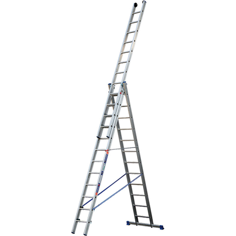 Scala telescopica in alluminio e acciaio GIERRE La scala si presta per 3 configurazioni diverse: - Configurazione A Portafoglio / Doppia: altezza massima di lavoro (mt): 3,21altezza massima prodotto aperto (mt): 1,92 - Configurazione A Sbalzo: altezza massima di lavoro (mt): 3,76altezza massima prodotto aperto (mt): 2,96 - Configurazione Estesa: altezza massima di lavoro (mt): 4,87altezza massima prodotto aperto (mt): 3,83 L'articolazione è in acciaio elettrosaldato rinforzato I pioli sono a sezione quadrata e misurano 25x25 mm Scala trasformabile tripla Gierre, 3x7 pioli.La scala trasformabile tripla Gierre AL405 può essere usata tutta estesa, oppure doppia, a sbalzo o in posizione zoppa. E' dotata di corde antiapertura e di piedini in gomma antiscivoloHa un gancio in alluminio, completo di dispositivo antisfilo, per una maggiore sicurezza CARATTERISTICHE: Portata massima (kg) 150 Dimensioni prodotto chiuso con imballo (HxLxP mt) 2.01x0.47x0.17 Dimensioni prodotto chiuso senza