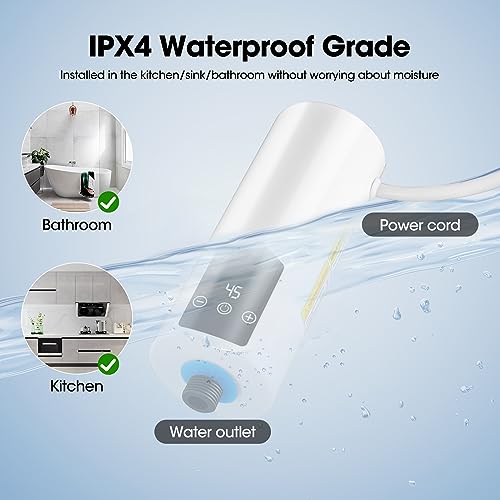 【Design di sicurezza】 Doccia istantanea con protezione dalle perdite, design impermeabile IPX4, protezione dal calore secco, isolamento da acqua ed elettricità, spegnimento automatico in stato di inattività, spegnimento automatico in caso di superamento della temperatura, ecc.