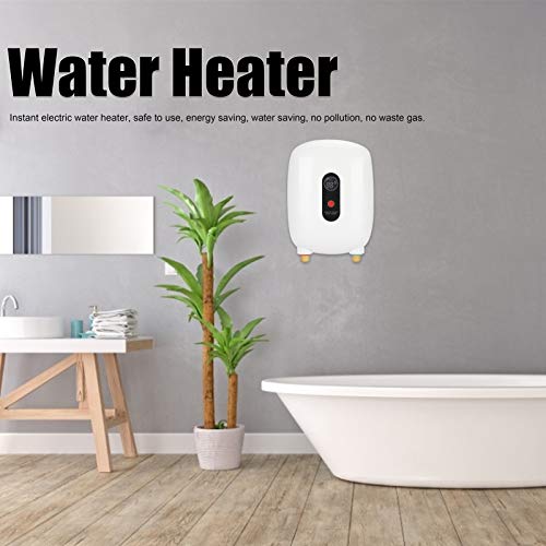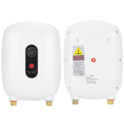 Scaldabagno Elettrico Sospeso Istantaneo Mini con Display LCD, Scaldabagno Senza Serbatoio Sistema di Acqua Calda per Cucina e Bagno, EU 220V 4000W(Bianco)