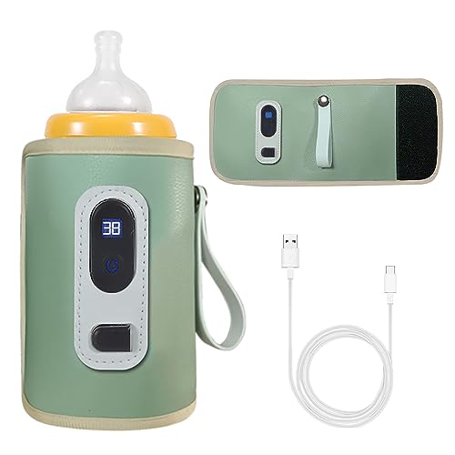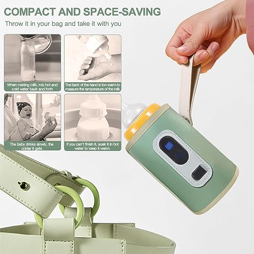 【Temperatura regolabile a 5 livelli】 Questo scaldabiberon portatile ha 5 impostazioni di temperatura regolabili: 38°C, 42°C, 46°C, 50°C, 55°C (100,4°F, 107,6°F, 114,8°F, 122°F, 131°F). 38°C-55°C può essere regolato a piacere per mantenere la bottiglia calda ed evitare che si raffreddi. Con display LCD per mostrare la temperatura.