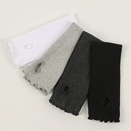 Scaldabraccia da donna con bordo a foglia di loto senza dita, elastico elasticizzato per braccia, manica lunga, foro per pollice, accessori (bianco)