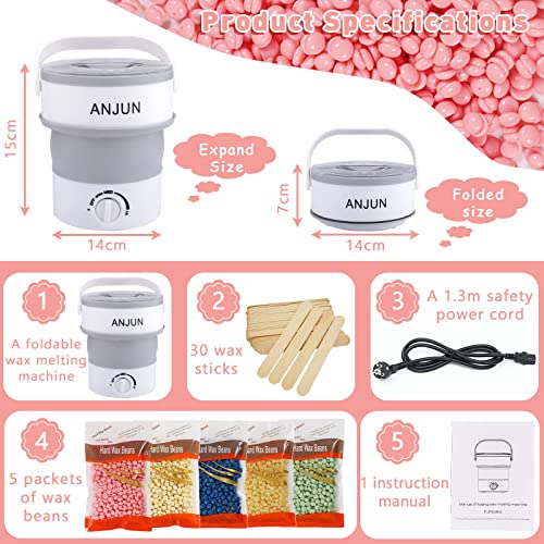 Scaldacera Elettrico, kit per depilazione,Scaldacera,Depilazione Ceretta Indolore con 5 Sacchetti di Cera Brasiliana Wax Warmer Set, 30 Spatole di Legno, depilazione indolore