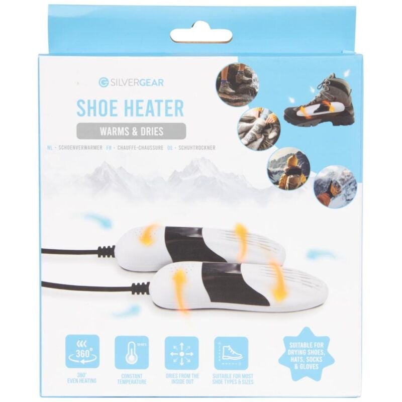 Scaldascarpe elettrico SilverGearUno scaldascarpe bello e pratico per riscaldare e asciugare scarpe, cappelli, calze e guanti. Con riscaldamento uniforme a 360° e temperatura costante. Adatto per calzature di tutte le forme e dimensioni. Asciuga i vestiti dall'interno. Colore: bianco/nero.