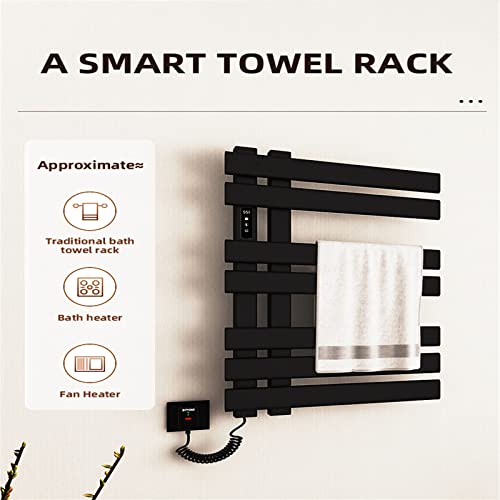 Scaldasalviette Elettrico Bagno a Basso Consumo,235W Scaldasalviette Termostato Timer Incorporato,Schermo LCD,IP45 Impermeabile,Portasciugamani,Scaldino Asciugaman-Black||Down Left Line