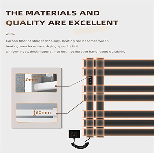 【Materiale】 Questo scaldasalviette è realizzato in lega di alluminio di alta qualità, facile da pulire e ha un'eccellente resistenza alla ruggine e alla corrosione. Progettato con ampi spazi tra 7 poli, offre un'aggiunta flessibile e funzionale al tuo spazio. Principio di riscaldamento adottato in fibra di carbonio per asciugare rapidamente gli asciugamani bagnati in bagno, Installazione a perforazione, Il design a parete consente di risparmiare spazio nel bagno.