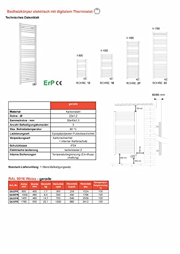 Scaldasalviette elettrico con termostato digitale programmabile (920 mm x 480 mm)