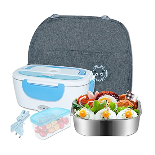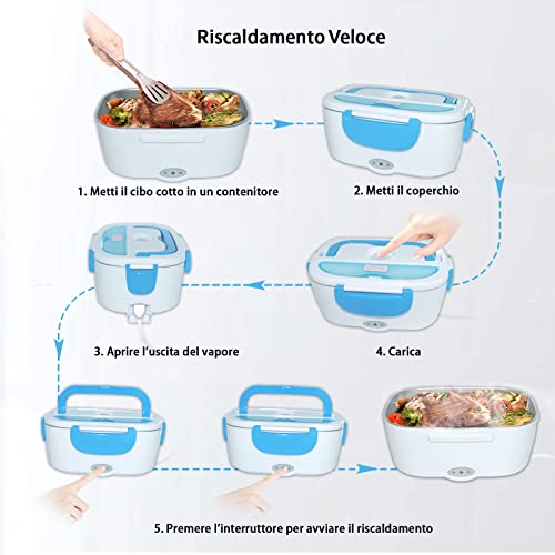 Scaldavivande Elettrico Portatile con Borsa Termica 1.5L (55W 220V), Lunch Box Portavivande Termico Elettronico Portatile in Acciaio Inox, Porta Pranzo da Ufficio, Blu