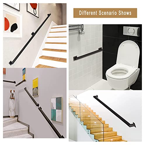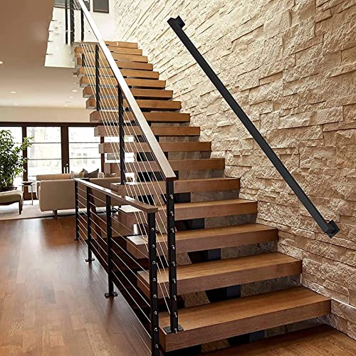 Scale per corrimano quadrate nere, corrimano in ferro battuto industriale galvanizzato montaggio a parete balaustra maniglione corrimano antiscivolo per ringhiera per la decorazione domestica ( Size: