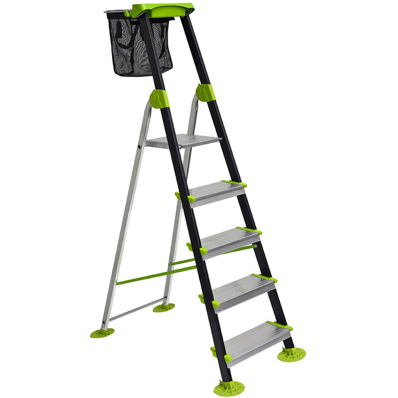 Centaure - Scaletta in alluminio con 5 gradini rivettati, altezza di accesso 3 m - GARDEN STEP Scaletta da giardino speciale. I vantaggi di questa scaletta Centaure GARDEN STEP sono: - Scarpe che non affondano nel terreno e che stabilizzano la scaletta su terreni irregolari. Quando si usano in casa, si rimuovono facilmente. - Dotato di un ripiano per gli attrezzi progettato per contenere gli strumenti del giardiniere e di un cesto staccabile per la raccolta. - Gradini più larghi del 60% rispetto alle scalette tradizionali, larghezza 13 cm. - Facile trasporto e stoccaggio grazie alla parte posteriore della scaletta che si aggancia dietro i gradini. - Struttura in alluminio. - Ampi gradini di 13 cm fissati con rivetti e dotati di tappi di protezione. - Piattaforma in acciaio antiscivolo. - Prodotto in Francia. Caratteristiche tecniche del Centaure GARDEN STEP: Numero di passi: 5 Altezza massima di accesso (m): 3,00 Altezza della piattaforma (m): 1,00 Dimensioni piegate (m): 1,75 x