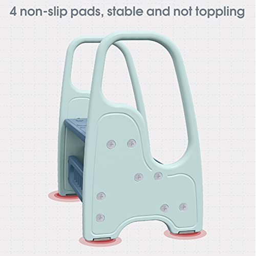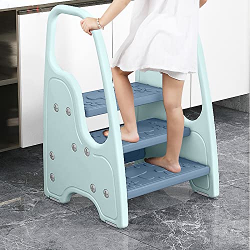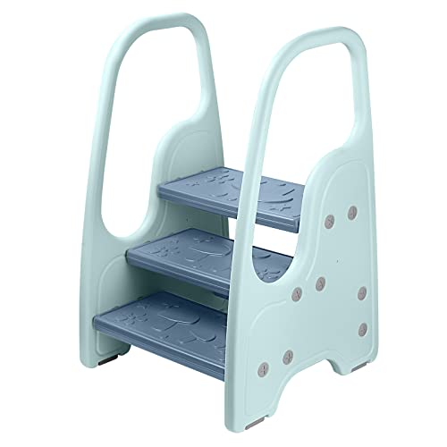 Scaletta per Bambini, Sicurezza Antiscivolo Sgabello a 3 Gradini con Doppio Corrimano, HDPE Inodore,46x43.5x71cm (BLU)