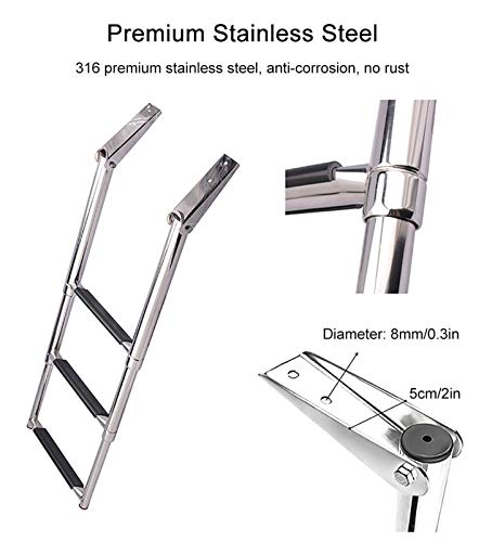 【Acciaio inossidabile】: i tubi di grado marino in acciaio inossidabile 316 ben saldati conferiscono alla scala del pontone una qualità robusta, durevole e resistente alla corrosione, nonché le linee eleganti. Caricare 200 kg / 440 libbre