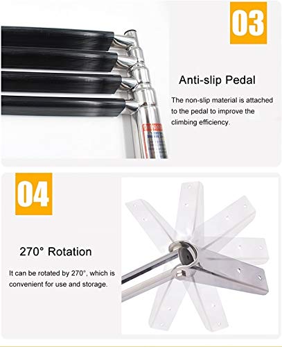 【Applicazione】: questa scala telescopica per barche è realizzata per essere imbullonata a una piattaforma orizzontale come il pavimento della barca o le ringhiere laterali a seconda installazione.Oltre a piccole barche a vela e navi, è perfetta anche per la maggior parte delle piscine, banchine, pontoni, e altro ancora!